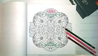 Le point hyper positif de cet ouvrage est que chaque mandala est imprimé sur un papier de bonne qualité et uniquement sur le recto. Donc si vous utilisez des feutres et que l’encre passe à travers, pas de problème! Je vous conseille tout de même de mettre une feuille intercalaire pour éviter toute surprise sur le dessin suivant. Personnellement, j’ai utilisé des pens 88 (Stabilo) dotés de pointe fine et des feutres pour enfants à pointe moyenne sans souci.