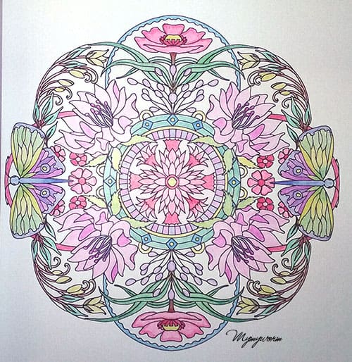 Ce livre de coloriage est composé de 40 mandalas aux motifs floraux. Le petit plus est qu’il y a en préambule des petits conseils et astuces de coloriage dispensés par l’artiste sur le matériel, la façon de colorier, etc…