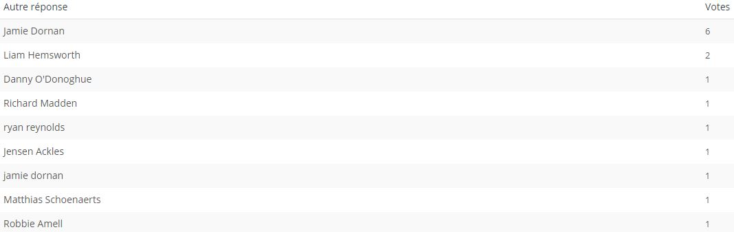 Mais rappelez-vous, vous aviez la possibilité d’élire un outsider en proposant un mâle de votre choix. Alors, qui va rejoindre Ian Somerhalder, Sam Heughan, Stephen Amell, Matt Bomer, Theo James et Kit Harington ?