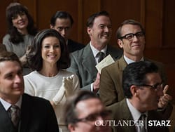 Deux nouvelles photos promotionnelles ont également été révélées sur les réseaux sociaux, l’une de Claire et Franck assistant à la remise de diplôme de Brianna et l’autre de Jamie à cheval :