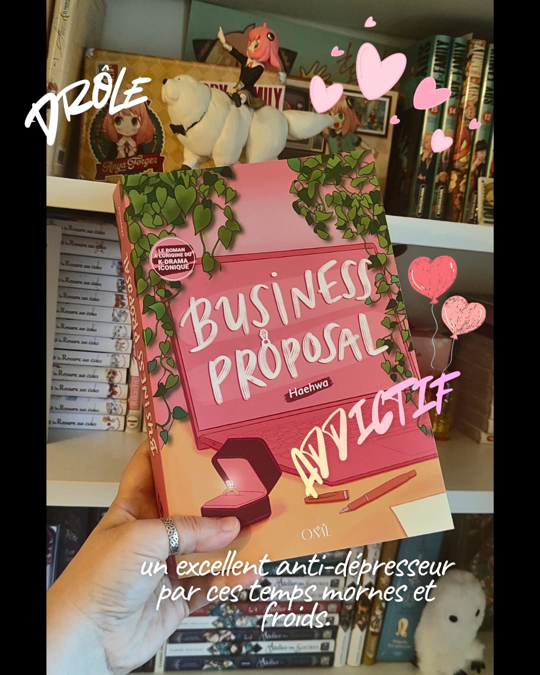 Business Proposal est un excellent anti-dépresseur par ces temps mornes et froids. Il m’a fait passer un super bon moment de lecture. J’ai beaucoup ri. Hari, Taemu, mais également leurs ami. e. s et le grand-père de Taemu, sont de sacrés personnages terriblement attachants.